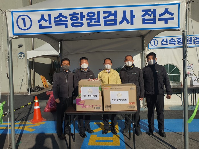 [동해시=세계타임즈 김민석 기자] 동해시의회(의장 김기하)는 최근 오미크론 변이 확산으로 관내 확진자가 급증하는 가운데 확산방지와 안전한 백신접종을 위하여 애쓰는 보건소를 방문하여 현장근무자들을 격려하고 감사를 전했다.
