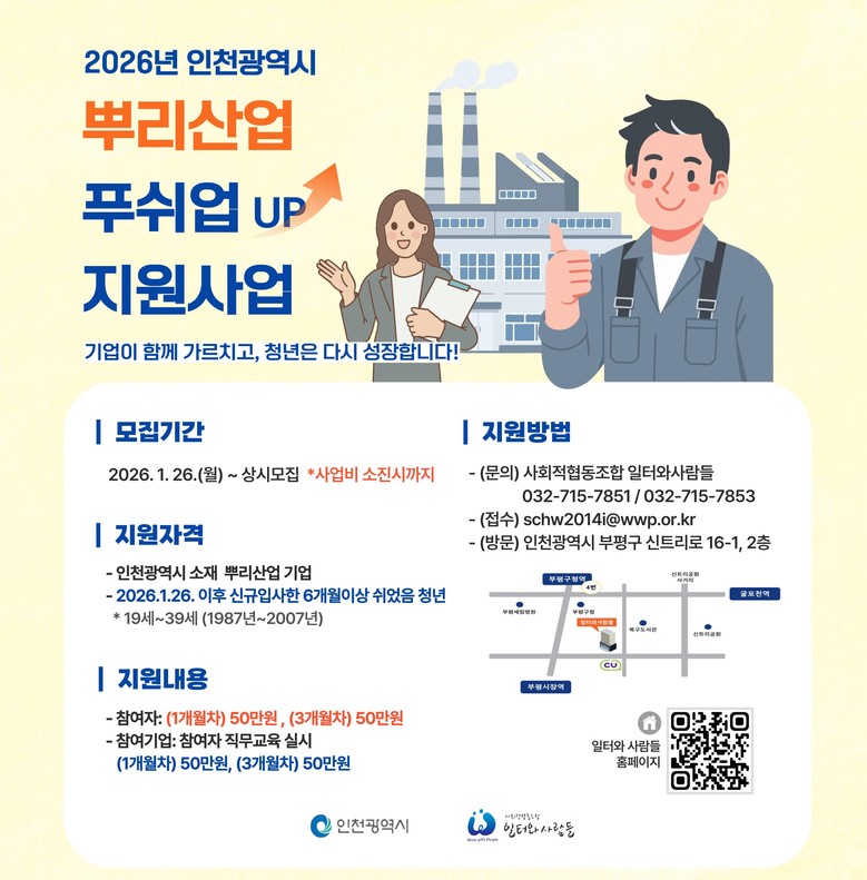 김상길 시 경제산업본부장은 “이번 사업을 통해 청년의 노동시장 진입을 돕고 신규 입직자의 안정적인 정착을 지원해 뿌리산업 현장의 인력난을 완화하고 지역 산업의 고용 기반을 강화하겠다”라고 말했다.