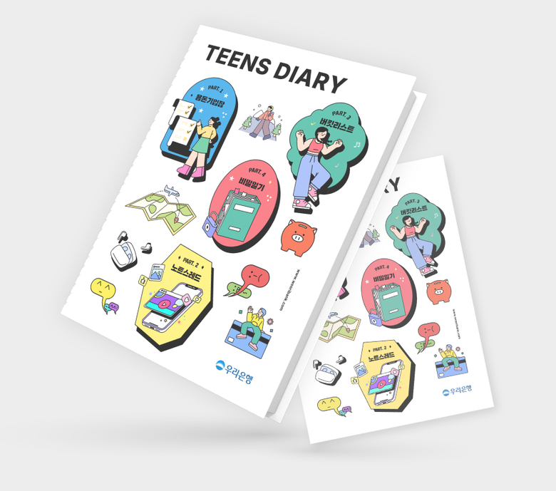 우리은행 ‘틴즈 다이어리’는 청소년의 경제활동 외에도 △아르바이트 경험과 인식 △주변인과의 소통방식 △직업에 대한 가치관 △부모님과 선생님에 대한 인식 등 요즘 청소년의 솔직한 생각도 담았다.
