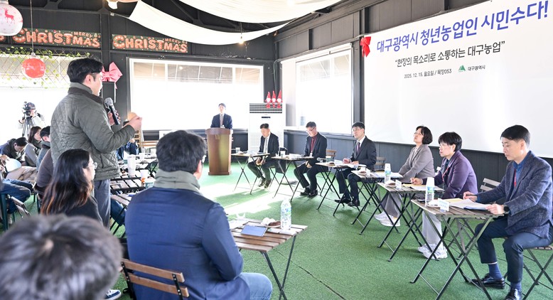 [대구 세계타임즈=한윤석 기자] 대구광역시는 12월 15일(월) 오후 2시, 목장053(동구 사복로 151)에서 ‘청년 농업인이 키우는 대구의 내일’을 주제로 청년 농업인들과 함께 ‘시민수다’를 진행했다.