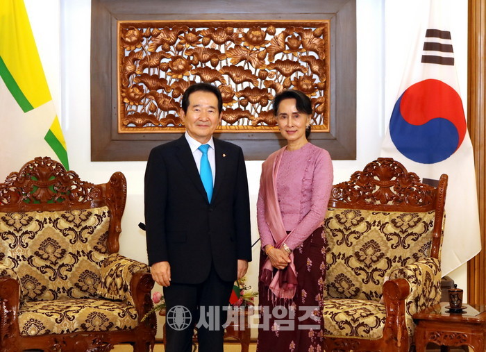 [세계타임즈 이채봉 기자]미얀마(Myanmar)를 공식방문 중인 정세균 국회의장은 현지시간 8월 11일(금) 오후 아웅산 수 찌(Kaw Aung San suu Kyi) 국가고문과 면담했다.