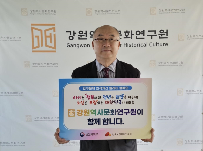 [강원도 세계타임즈=김민석 기자] 강원역사문화연구원(최종모)은 ‘인구문제 인식개선 릴레이 캠페인’에 동참했다고 5월 15일 밝혔다.