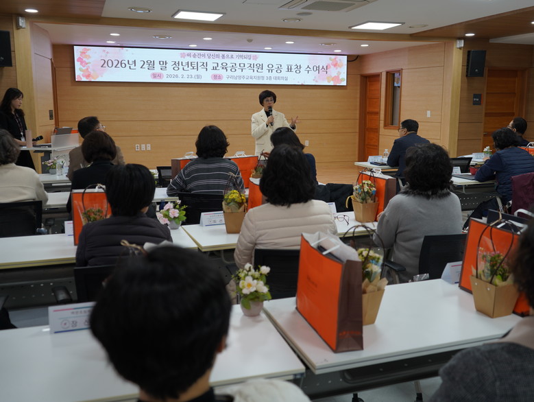 구리남양주교육지원청 서은경 교육장은 “맡은 자리에서 최선을 다해 주신 시간이 있었기에 우리 아이들이 안전하고 행복한 환경 속에서 성장할 수 있었다”며, “새로운 시작 앞에 늘 건강과 행복이 함께하길 바란다.”고 말했다.