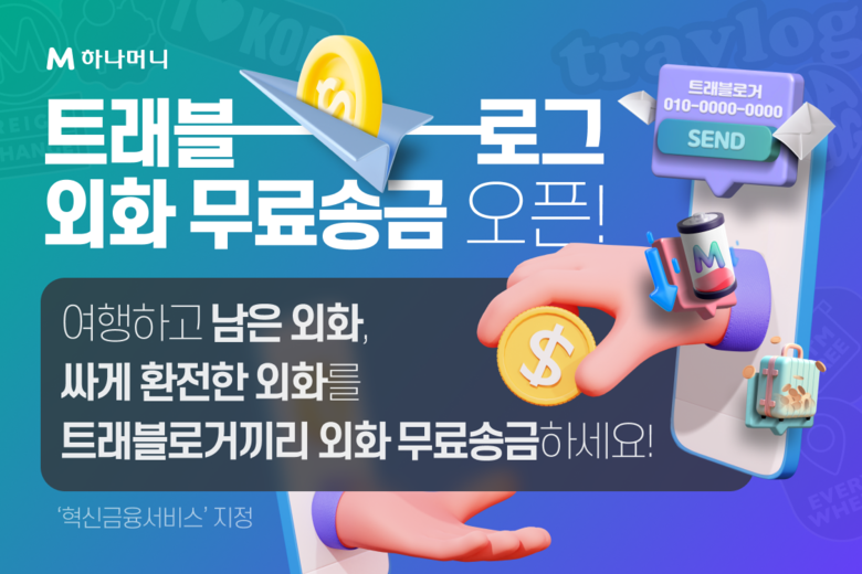 ‘외화 무료송금 서비스’와 ‘목표환율 자동충전 서비스’를 함께 활용하면 혜택은 배가 된다. ‘목표환율 자동충전’은 사용자가 설정한 환율보다 낮아지면 자동으로 외화를 환전해주는 서비스다. 하나머니에서 제공하는 41종 통화 모두 가능하며 충전할 금액 및 서비스 사용 기간을 사용자가 직접 설정할 수 있다. 원하는 통화의 환율이 낮을 때 조금씩 자주 환전 할 수 있으며 여행을 떠나는 친구/연인에게 해당 외화를 선물 할 수 있다. ‘외화 무료송금 서비스는 2024년 4월 3일 금융위원회로부터 금융혁신지원특별법에 의거하여 ‘혁신금융서비스’로 지정 받아 시행되는 것으로 오직 트래블로그에서만 가능하다.