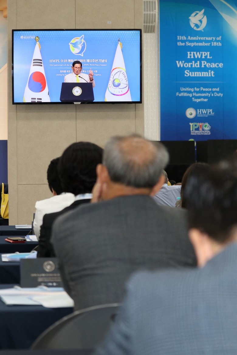 HWPL 이만희 대표는 기념사에서 “분쟁은 선이 될 수 없다. 평화를 이루어가는 것이 선이 될 것”이라며 평화를 위한 전지구적 협력을 강조했다. 이어 “이 시대에 평화 세계를 만들지 못하면 후세대에게 분쟁을 옮겨주게 된다”며 “우리가 후대에 남겨줄 것은 분쟁이 아닌 평화의 세계다. 오늘날 우리가 해나가야 할 일은 선행"이라고 피력했다.