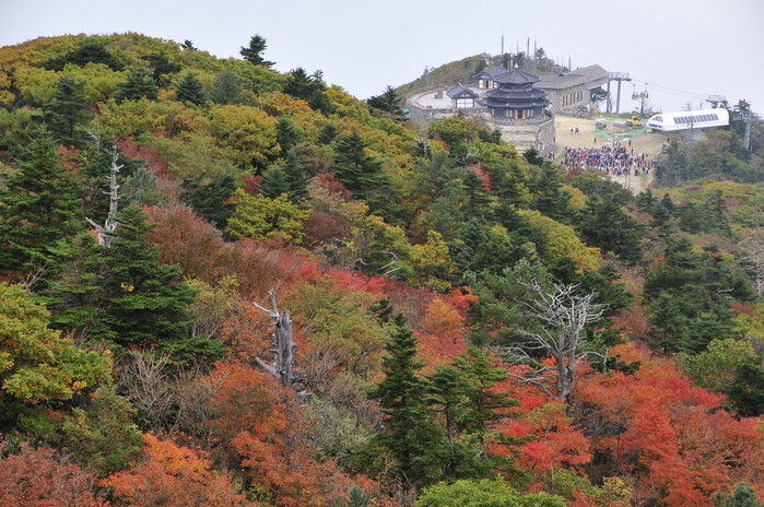 부영그룹 무주덕유산리조트가 위치해있는 덕유산(1614m)국립공원은 이번 주말인 11월 1일에서 2일 쯤 단풍이 절정에 이를 것으로 예상된다. 무주덕유산리조트에서 관광곤도라를 타면 1520m 설천봉까지 쉽게 오를 수 있고, 정상인 향적봉까지는 편안한 걸음으로 20분정도만 오르면 된다.