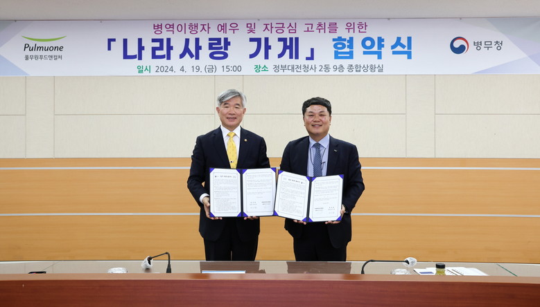 협약에 따라 풀무원푸드앤컬처와 병무청은 ▲나라사랑 가게 적용 사업장 선정 ▲병역이행자가 나라사랑 가게 사용 시 할인 등 혜택 제공 ▲나라사랑 가게 홍보 및 활성화, 확대 등 지원 ▲기타 공동발전을 위한 상호협력에 관한 사항 이행 등을 상호 협력하여 추진한다.