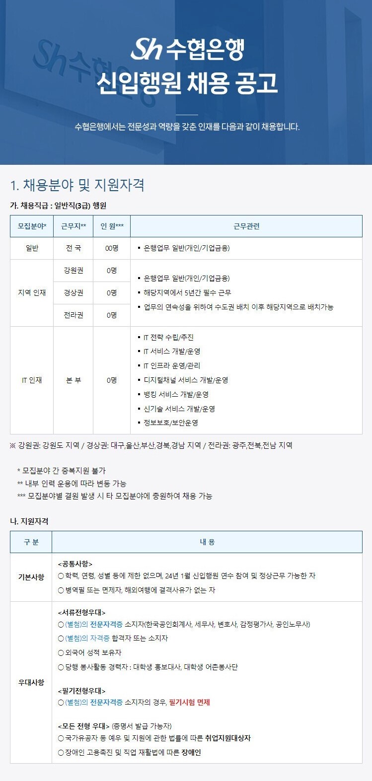 지원자격은 학력과 연령, 성별에 제한이 없으나 2024년 1월 중 예정된 신입행원 연수과정에 참여할 수 있어야 하며, 이후 정상근무가 가능해야 한다.