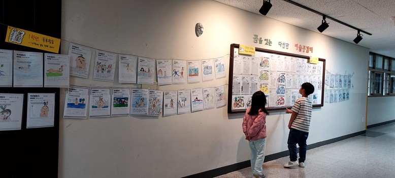 학년별 교육활동은 그림책 ▲장수탕 선녀님(1학년) ▲샘과 데이브가 땅을 팠어요(2학년) ▲프레드릭(3학년) ▲할머니의 용궁 여행(4학년) ▲지구를 구하는 쓰레기 제로 대작전(5학년) ▲빙하가 녹으면 피자를 못 먹어? (6학년)를 읽고 독후 활동 후 그림책에 맞는 간식(야쿠르트, 보석 캔디, 치즈 샌드, 고래밥, 참쌀 설병 그리고 피자타임)을 제공했다.