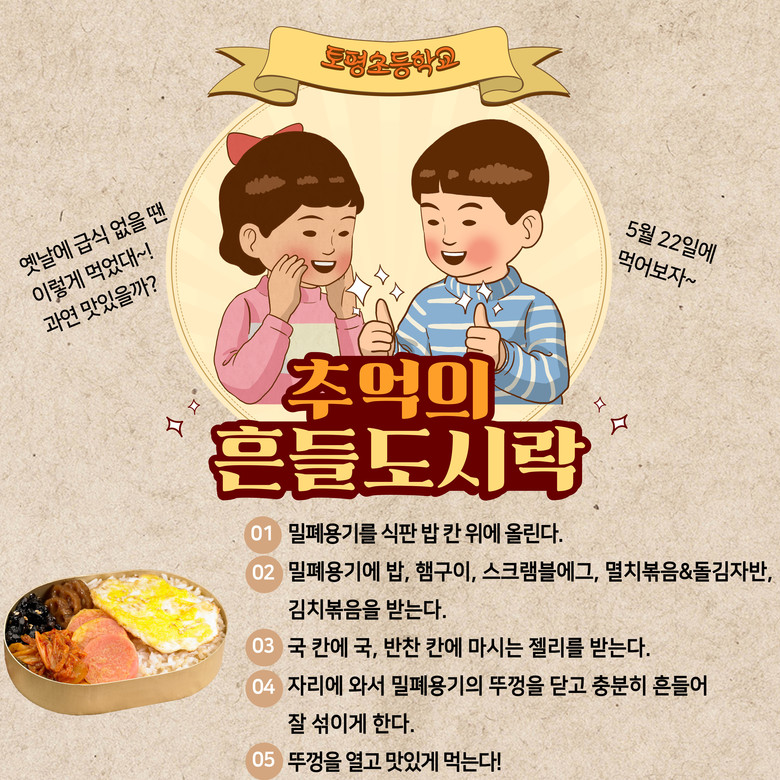 ◦ 구리 토평초등학교, 가정의 달을 맞아 추억의 흔들 도시락 이벤트 실시