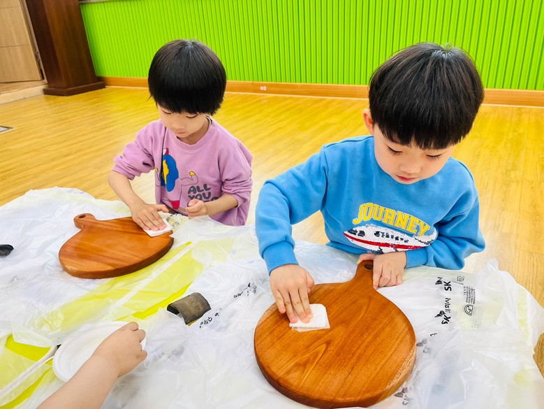4월 29일(월)에 진행된 부모님을 위한 선물, 플레이팅 도마 목공 체험을 하며 참솔반 정수아 유아는 “엄마, 아빠와 맛있는 음식을 해 먹을 거예요”“음식을 예쁘게 담아서 먹을 수 있을 것 같아요”라며 열심히 활동에 참여하였다. 또한“엄마가 맛있는 음식 해주시는 것이 생각나서 좋았어요.”라고 참여한 소감을 밝히기도 하였다.