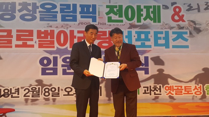글로벌아리랑서포터즈(회장 권태균, 옛골토성 대표, 이하 서포터즈)가 2일 경기도 과천시에 위치한 과천 옛골토성 힐링관에서 ‘평창올림픽 전야제 & 글로벌아리랑서포터즈 임원임명식’을 개최했다.