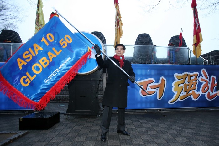 또한 민영화시대 첫 발을 내디디며, 이광구 은행장의 타북으로 새로운 시작을 알린 뒤 비전 ‘ASIA 10, GLOBAL 50’을 상징하는 깃발 번양과 거치식을 실시했다.