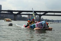 약 1시간30분 동안의 한강 건너기 후 도착점에 도착한 참가자들은 분리수거를 통한 환경보호와 자원순환 사회 구축이라는 대회 취지에 맞뤄 직접 만들 뗏목을 분해, 분리수거하는 과정을 진행했다.