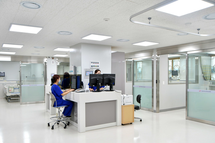 새롭게 문을 연 한림대춘천성심병원 통합중환자실은 1인실 8개를 비롯해 총 23병상으로 운영되며, 감염병 대비를 위해 음압격리병실 2개를 갖췄다. 또한 진료 효율을 높이기 위해 통합중환자실을 2개의 메인스테이션으로 구분했고, 곳곳에 간호사 서브스테이션을 배치했다. 덕분에 의료진이 환자를 실시간 모니터링하고, 비상시 빠른 대처를 할 수 있다.