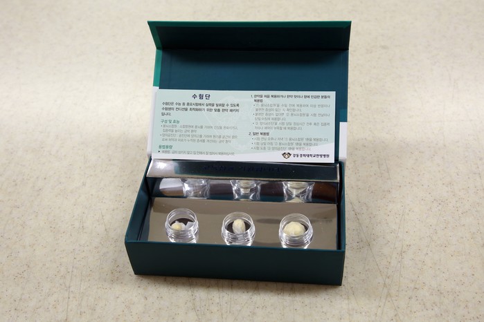수험단은 수능 등 중요한 시험에서 제 실력을 발휘할 수 있도록 수험생의 컨디션을 최적화하기 위한 맞춤 패키지다. 공부에 매진하는 학생을 위해 기를 다스려 스트레스로 발생할 수 있는 답답한 증상을 다스리는 ‘소합향원’에 막힌 것을 통하게 하고 정신을 맑게 하는 ‘용뇌’를 추가해 긴장을 완화하고 집중력을 높일 수 있는 ‘용뇌소합원’ 2환과 공진단에 원기(元氣)와 정혈(精血)이 부족하여 몸이 쇠약해진 데 사용하는 양의고를 더해 원기를 굳건히 만들어 오랜 시간 공부로 인해 쌓인 피로를 개선하는 ‘양의공진단’ 1환 총 3환 패키지로 구성되었다.