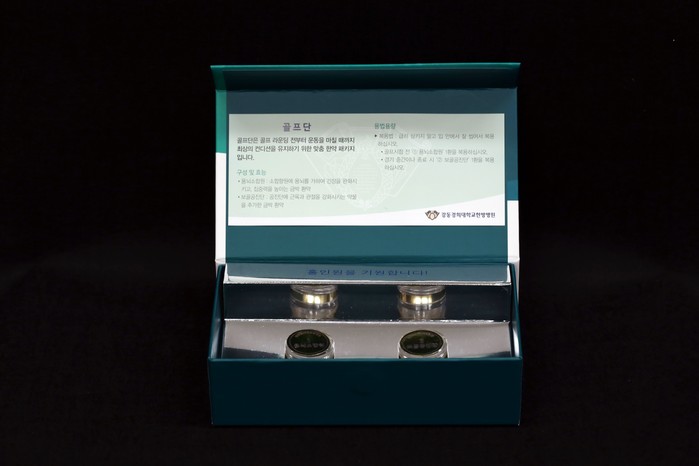 늘어나는 스포츠 인구를 위한 ‘골프단’ 패키지도 출시했다. ‘골프단’은 운동 전부터 운동을 마칠 때까지 최상의 컨디션을 유지하기 위한 맞춤 한약 패키지다. 운동 시작 전, 용뇌소합원 1환을 복용해 긴장을 풀고 집중력을 높이며 운동 중간 혹은 끝난 후 공진단에 하체를 강화해주는 육미지황탕과 뼈를 보(補)해주는 보골지를 가미한 ‘보골공진단’ 1환으로 운동 후 기력을 빠르게 회복시킬 수 있다.