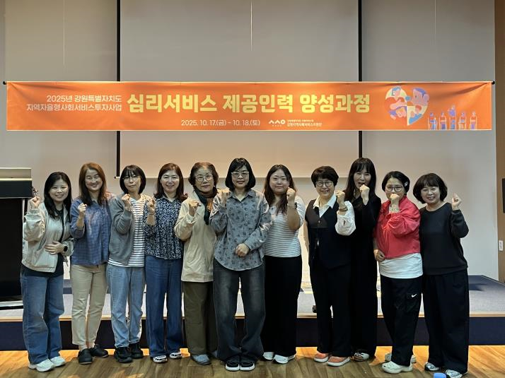 [강원도 세계타임즈=김민석 기자] 강원특별자치도 사회서비스원(원장 이은영) 소속 강원지역사회서비스지원단은 도내 지역자율형 사회서비스 투자사업의 심리서비스 제공인력 양성을 위한 집합교육을 9월부터 10월까지 총 4회에 걸쳐 28시간 진행하였다.