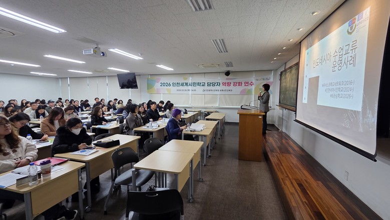 [인천 세계타임즈=심하린 기자] 인천광역시교육청(교육감 도성훈)은 26일 인하대학교에서 2026년도 인천세계시민학교 담당교사 90여명을 대상으로 역량강화 연수를 실시했다.