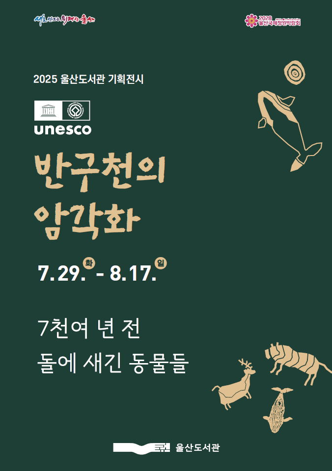 울산도서관은 7월 29일부터 8월 17일까지 1층 전시실에서 반구천 암각화 기획전시 ‘7,000여 년 전 돌에 새긴 동물들(展)’을 개최한다고 밝혔다.