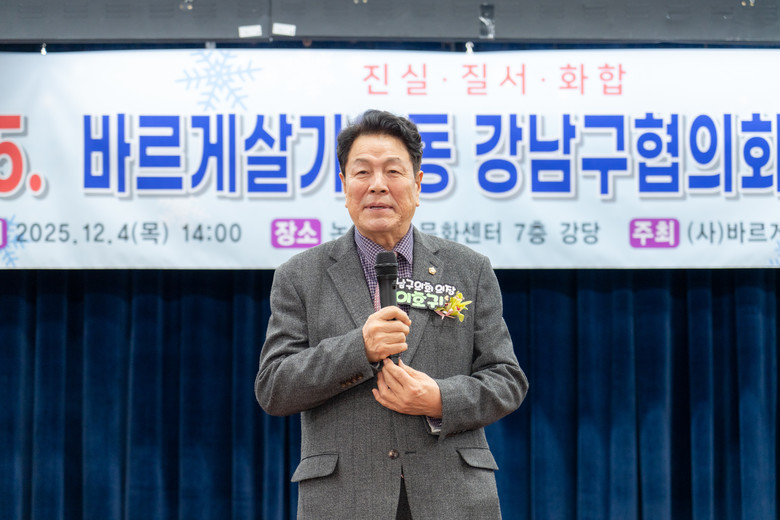 ‘2025 바르게살기운동 강남구 평가보고대회’는 바르게살기운동 강남구협의회 주최 및 강남구청 주관으로 개최됐으며, 진실·질서·화합을 3대 이념으로 정직한 개인, 더불어 사는 사회, 건강한 국가를 만들기 위해 국민정신운동을 주도해 왔다.