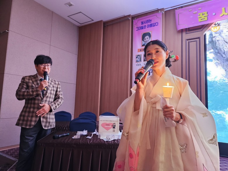 한편, 여성봉사단 회원 일동은 행사가 끝날 무렵 촛불을 하나씩 들고 감사의 인사와 새해 소망을 빌고 한마음 한뜻이 되어 묵묵히 따라준 회원들께 고마움을 전하며 눈시울을 적시며 다가오는, 2025년에는 지역사회를 위해 더 많은 봉사를 하기 위해 새로운 각오를 다지는 선전을 외치며 경남여성봉사단 송년&국민 밥상 무료 급식 후원자의 밤은 성료 됐다.