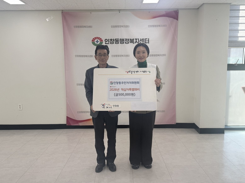 [구리시 세계타임즈=송민수 기자] 구리시(시장 백경현) 인창동 행정복지센터(동장 김경애)는 지난 29일, 인창동 주민자치위원회(위원장 양후선)가 어려운 이웃을 돕기 위한 2026년도 적십자 특별회비 50만 원을 적십자봉사회(회장 권영숙)에 전달했다고 밝혔다.