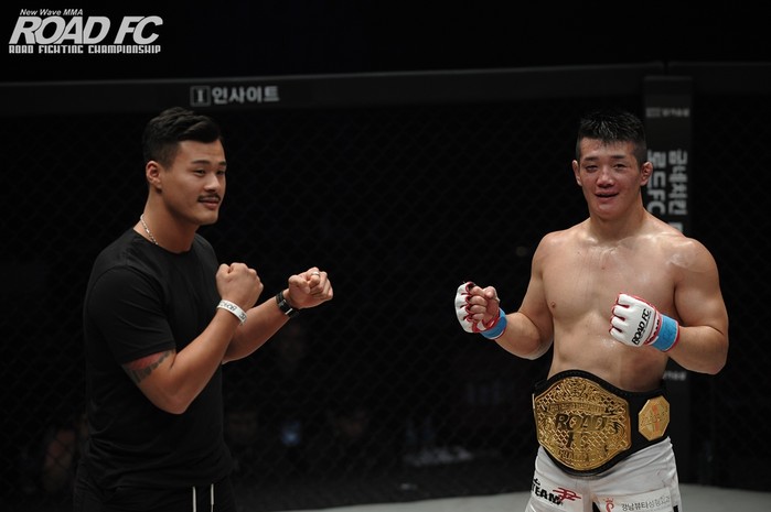 [세계타임즈 김인수기자] 지난 28일 원주 종합체육관에서 열린 XIAOMI ROAD FC 048에서 라인재는 ‘1세대 파이터’ 최영을 판정승으로 꺾고 ROAD FC 6대 미들급 챔피언에 올랐다. 현장을 지켜보고 있던 황인수가 라인재의 인터뷰 도중 케이지 위로 올라갔고 “영건즈 시합 보는 줄 알았습니다. 챔피언전인데. 제가 연말에 타이틀전을 할 수 있다면 타이틀전이 뭔지 확실히 보여드리겠습니다.”라고 선제 도발했다. 라인재 역시 “저는 좋죠. 황인수 선수도 좋고 다른 선수들도 다 좋습니다. 빨리 시합만 잡아 주세요.”라고 여유 있게 받아쳤다.