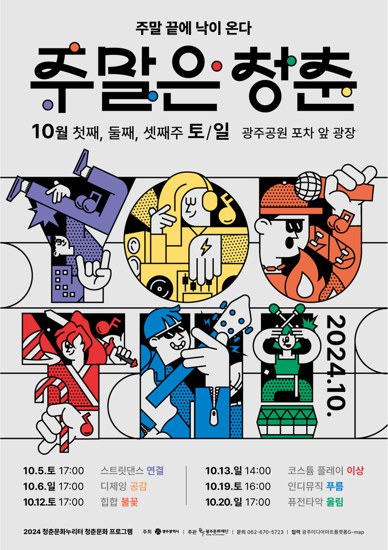 광주광역시(시장 강기정)는 오는 10월 5일부터 3주간 매주 토‧일요일 오후 광주공원 앞 노상주차장 광장에서 ‘청춘문화누리터’를 운영한다.