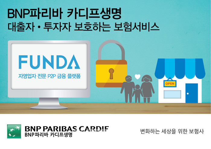 [세계타임즈 조철희 기자]BNP파리바 카디프생명(대표: 브누아 메슬레)은 자영업자 전문 P2P(Peer-to-Peer, 개인 대 개인) 금융기업인 ‘펀다(FUNDA)’와 업무협약을 맺고, ‘펀다’를 통해 P2P 대출을 받은 자영업자를 대상으로 ‘펀다 대출상점 안심보험 서비스’ 제공에 나선다고 밝혔다.