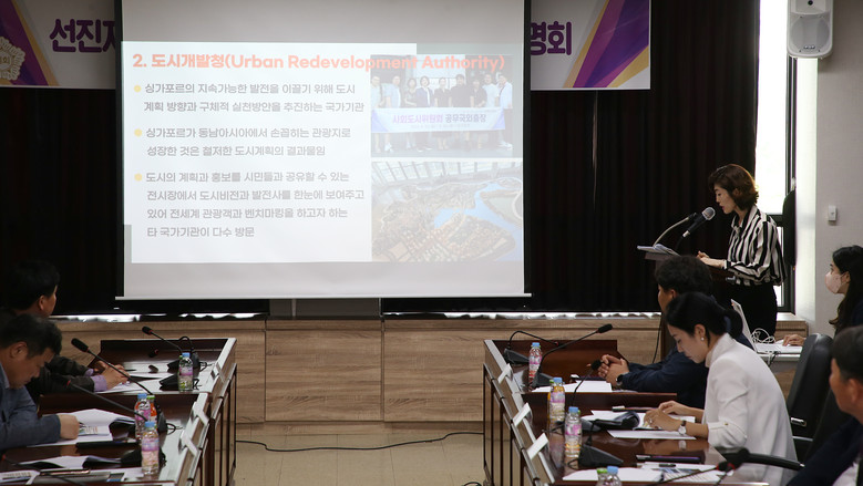이번 보고회는 지난 4월 23일부터 4월 28일까지 4박 6일 일정으로 싱가포르의 도시재생사업과 도시경관사업, 도심 내 공원조성 사례 등을 벤치마킹하기 위해 마리나베라지, 도시개발청, 보타닉가든, 가든스바이더베이, 클락키 등을 방문하고 관계자들과의 면담 등을 통해 발굴한 우수 정책 사례를 공유하고 남동구에 접목할 수 있는 방안을 제시하였다.