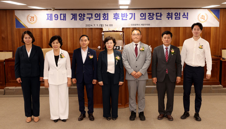 지난 6월 25일 9대 후반기 의장단 선거를 통해 2선 의원인 더불어민주당 신정숙(작전 1,2동, 작전서운동) 의원이 의장으로, 국민의힘 이상호(계산4동, 계양 1,2,3동) 의원이 부의장으로 선출됐다.