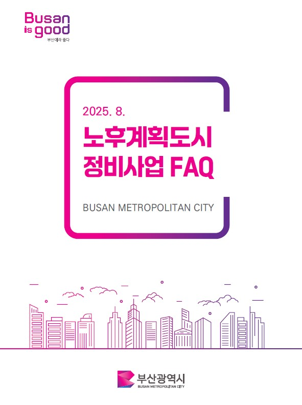 ◈ 10.13.~10.17. 기본계획(안)에 따른 1단계(화명·금곡, 해운대1·2) 선도지구 선정 공모 접수… 화명·금곡 2천500세대, 해운대 3천200세대 [부산 세계타임즈=이용우 기자] 부산시(시장 박형준)는 특·광역시 중 최초로 시행하는 노후계획도시정비사업에 대한 정보를 한눈에 확인할 수 있는 '노후계획도시정비사업 자주하는질문(FAQ)' 책자를 발간했다고 밝혔다.