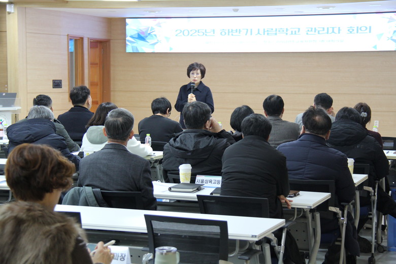 회의에는 관내 사립 초·중·고·각종학교 24개교 교장 및 행정실장이 참석하며, 주요 내용으로는 ▲2025학년도 교비회계 집행 현황 분석 ▲집행 목표 98% 달성을 위한 관리 방안 ▲이월·불용 최소화를 위한 시설공사 추진 현황 공유 등이 논의되었다.