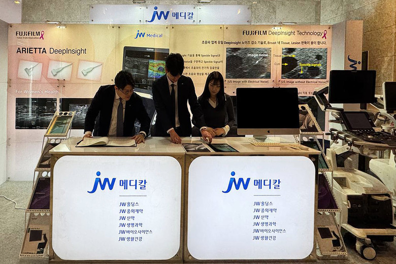 이번 행사에서 JW메디칼은 일본 후지필름(FUJIFILM)이 개발한 초음파 영상진단기기 △AR850DI △AR750DI 2종을 전시해 참석자들의 많은 관심을 받았다. ‘AR850DI’와 ‘AR750DI’ 제품은 최신 초음파 영상 기술인 후지필름의 ‘딥인사이트(DeepInsight)’가 적용된 프리미엄 초음파 영상진단기기다.
