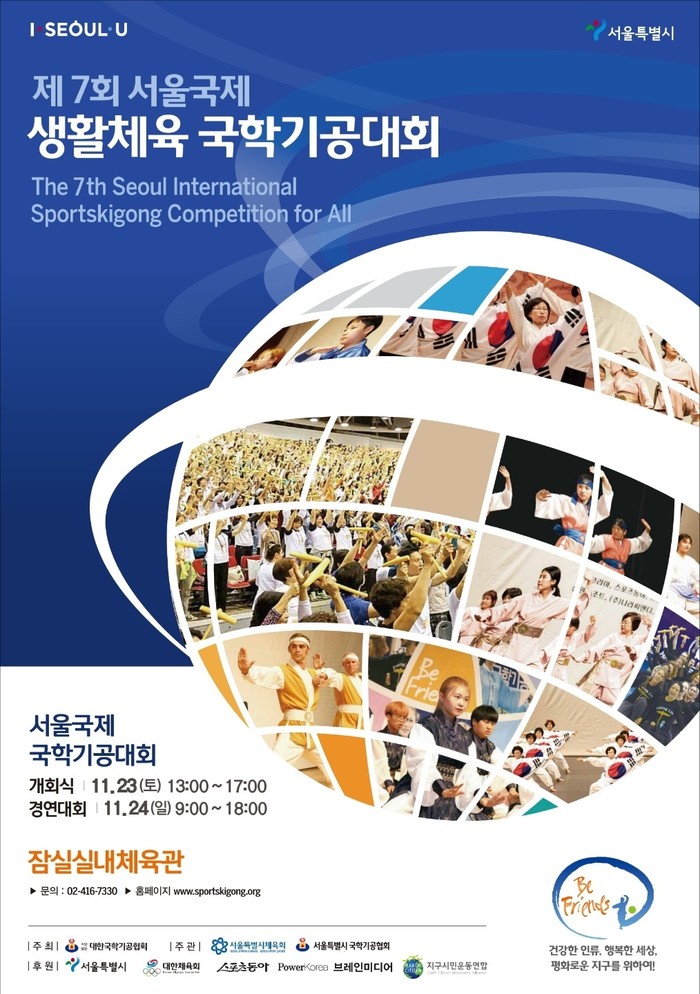 서울특별시체육회(회장 박원순)는 국학기공의 국제화와 대중화를 위한 ‘제7회 서울국제 생활체육 국학기공대회’를 11월 23일부터 이틀간 잠실실내체육관에서 개최한다.