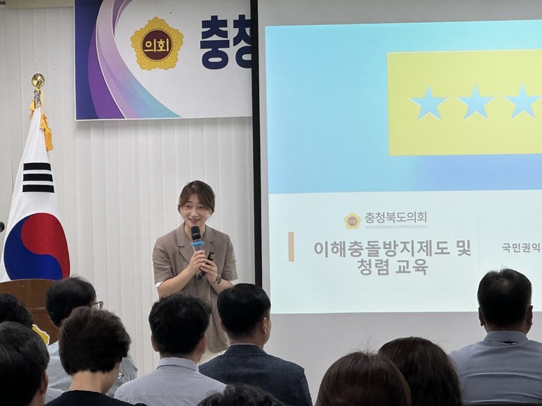 [충북 세계타임즈=이현진 기자] 충북도의회(의장 이양섭)가 의원·직원 등 구성원을 대상으로 다양한 이해충돌방지제도와 청렴교육을 통해 반부패 청렴의식으로 재무장하고 있다.