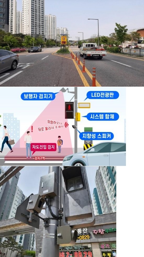 아름초 통학로 교통안전시설 개선 사업은 사업비 1억 6천만원을 투입해 어린이보호구역 내 횡단보도 3곳을 통해 등하교하는 아름초 학생들의 보행 안전을 강화하고 과속 운전을 방지하기 위해 추진됐다.