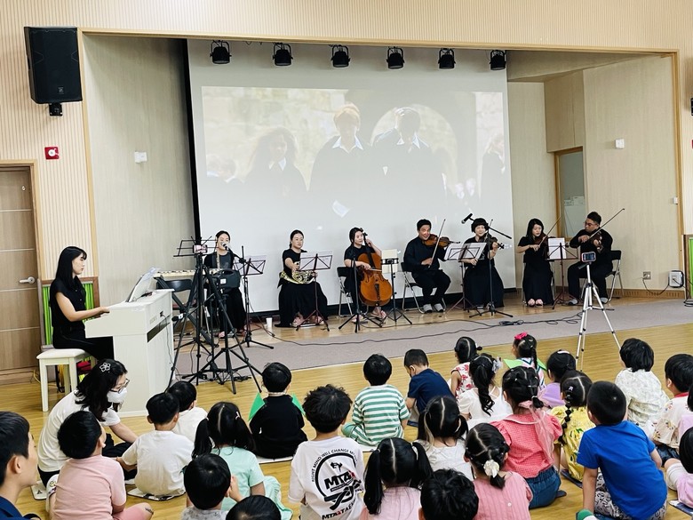바이올린, 첼로, 호른, 플룻 등으로 구성된 오케스트라 합주단은 바로크 시대의 바흐와 같은 거장으로부터 모차르트, 드보르자크 등 유명 작곡가들의 다채로운 명곡을 잇달아 연주하였다. 또한 해리포터와 어벤져스 OST 연주에 이어 원가, ‘다섯 글자 예쁜 말’ 등 유아들에게 친숙한 노래를 함께 불러보는 시간으로 막을 내리며 무더운 여름날 지친 몸과 마음을 치유하는 뜻깊고 특별한 방학식이 되었다.