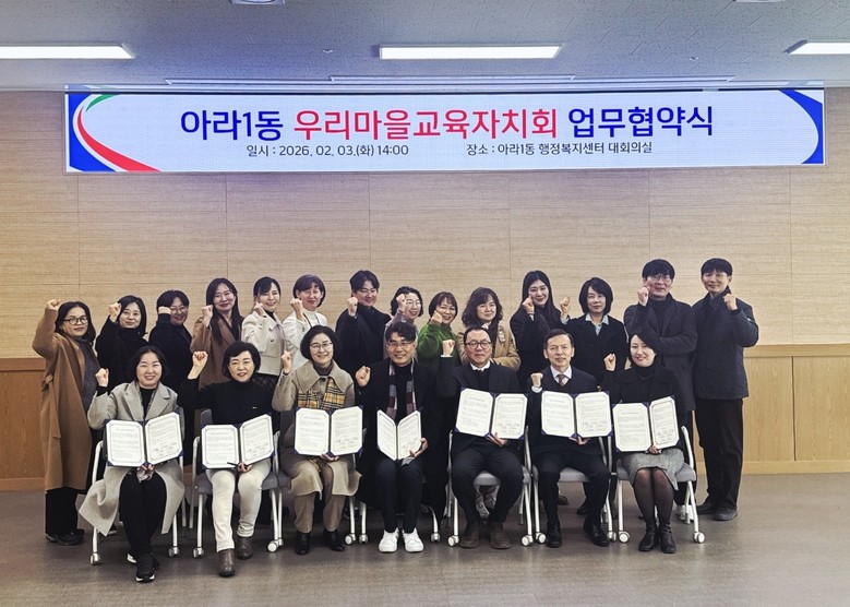아라1동 우리마을교육자치회는 인천아라초등학교, 인천아람초등학교, 인천해든초등학교, 인천아라중학교, 인천아라고등학교, 아라1동 행정복지센터, 아라1동 주민자치회가 협약에 참여했다.