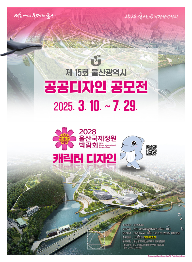 오는 7월 23일~29일, 전자우편 통해 신청 [울산 세계타임즈=이호근 기자] 울산시는 ‘2028 울산국제정원박람회 캐릭터 디자인’을 주제로 ‘제15회 울산광역시 공공디자인 공모전’을 개최한다고 밝혔다.