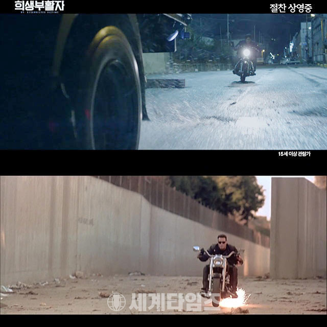 영화 '희생부활자' 예고편에서는 아놀드 슈왈제네거가 오토바이를 타고 트럭을 쫓는 영화 '터미네이터 2'를 연상케 하는 모습으로 현봉식이 등장했다.