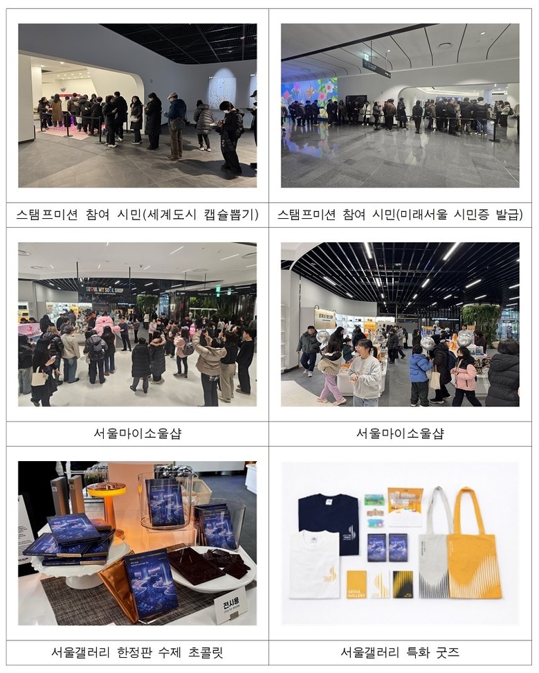 이번 개관행사는 서울의 매력과 미래 비전을 체험형 콘텐츠로 풀어낸 ‘서울갤러리’의 공간 정체성을 시민들이 직접 경험할 수 있도록 구성되었다. 스탬프투어, 미니콘서트, 강연 등 다양한 프로그램이 곳곳에서 운영되며 방문객들의 발길을 사로잡았다.