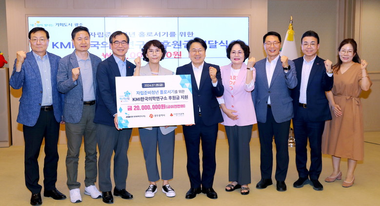 [광주 세계타임즈=손권일 기자] (재)KMI한국의학연구소가 자립준비청년을 위해 후원금 2000만원을 광주시에 전달했다.