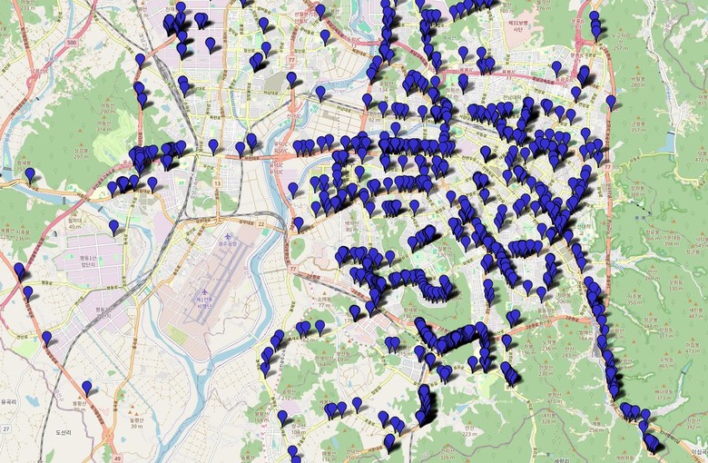 광주시가 운영하는 공간정보시스템은 공간정보에 관한 데이터베이스를 탑재한 도로기반시설물 통합 관리시스템으로, 상수도, 하수도, 가스 통신 관련 정보가 담겨있다.