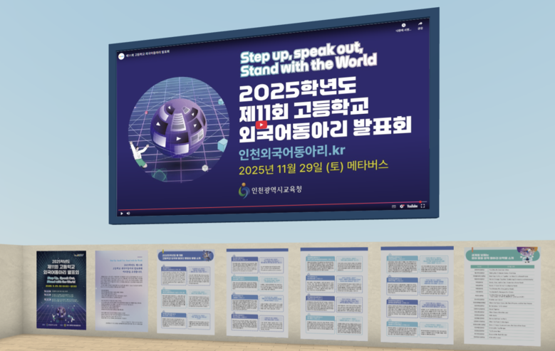 [인천 세계타임즈=심하린 기자] 인천광역시교육청(교육감 도성훈)은 11월 29일 메타버스 플랫폼을 활용해 ‘2025학년도 제11회 고등학교 외국어동아리 발표회’를 개최했다.