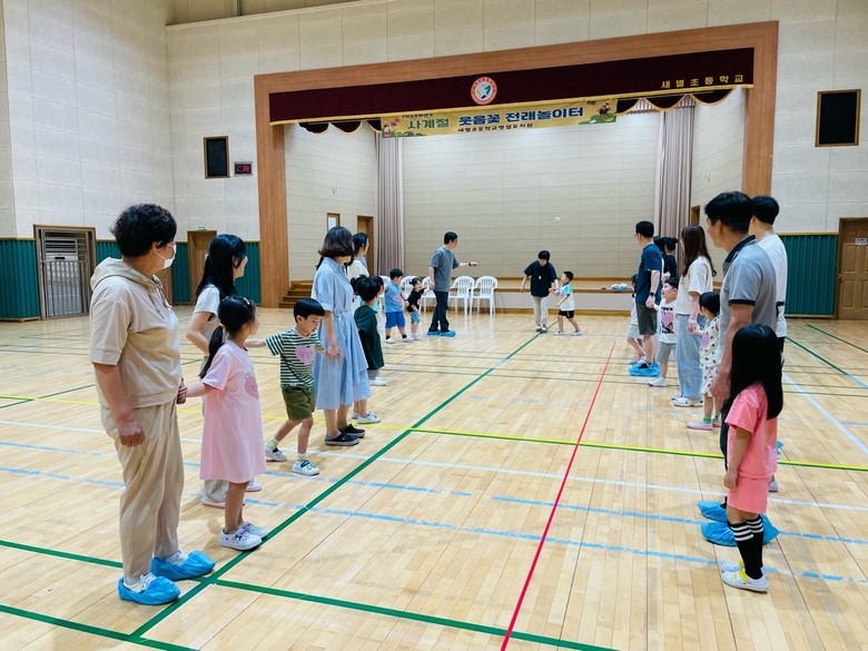 [광주 세계타임즈=손권일 기자] 새별초등학교병설유치원이 지난 24일 새별초등학교 강당에서 ‘사계절 웃음꽃 전래놀이터’를 실시했다.