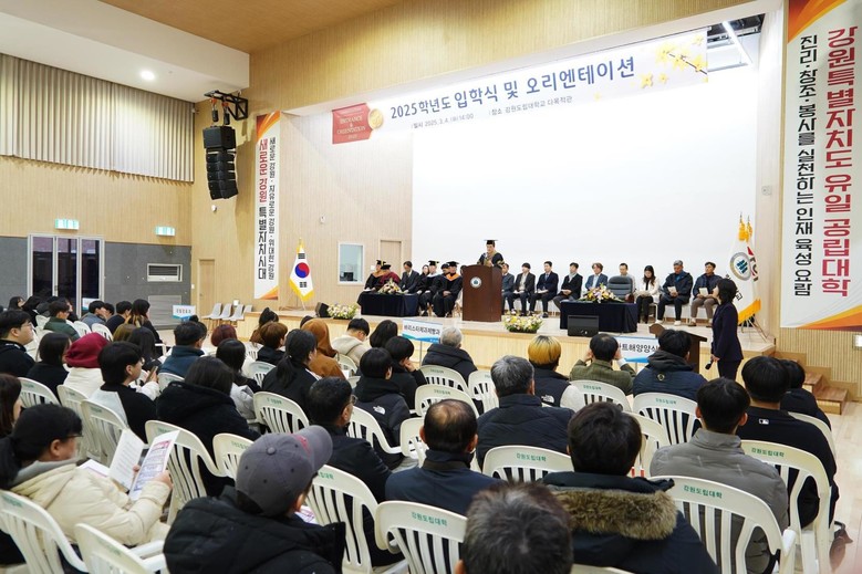 [강원도 세계타임즈=김민석 기자] 강원도립대학교(총장 김광래)는 2025년 3월 4일(화) 오후 2시, 대학 다목적관에서 2025학년도 입학식 행사를 진행했다.