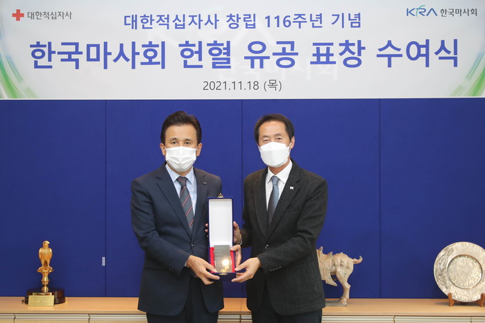 한국마사회는 매년 정기적으로 4회 임직원 단체 헌혈행사를 시행하고 있고 헌혈 참여 캠페인 시행, 헌혈 공가 도입 등을 통해 임직원들의 적극적인 참여를 이끌어 내며, 코로나19 이후 수급에 어려움을 겪고 있는 헌혈 부족 극복을 위한 노력과 공로를 인정받았다.