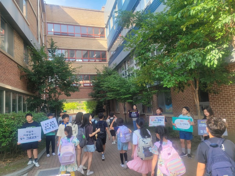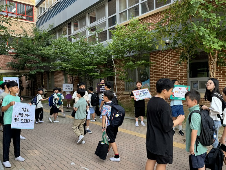 이번 캠페인은 6월 17일(월)부터 21일(금)까지 학교문화책임규약 켐페인 주간을 운영하면서, 19일(수)에는 아침 8시 30분부터 9시까지 학생자치회와 교사, 학부모가 함께하며 아침 등굣길 캠페인을 실시하여 서로 존중하고 평화로운 학교문화를 조성하고자 하였다.